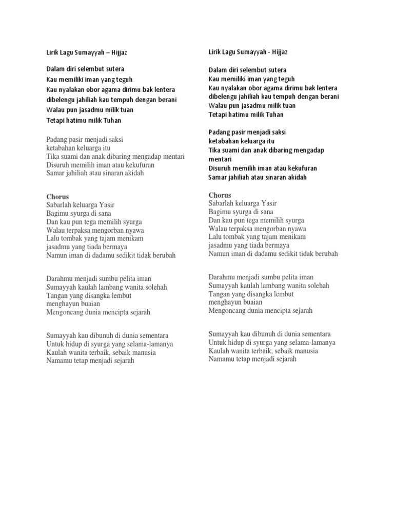 Lirik Lagu Sumayyah Oleh Kumpulan Hijjaz Pdf